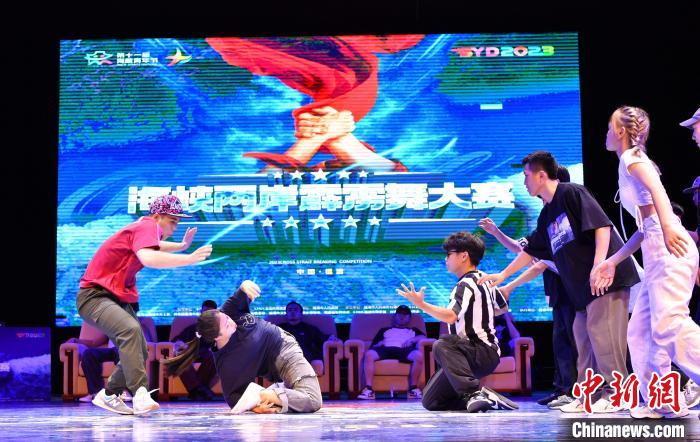 图为两岸霹雳舞团体斗舞交流赛现场。吕明摄