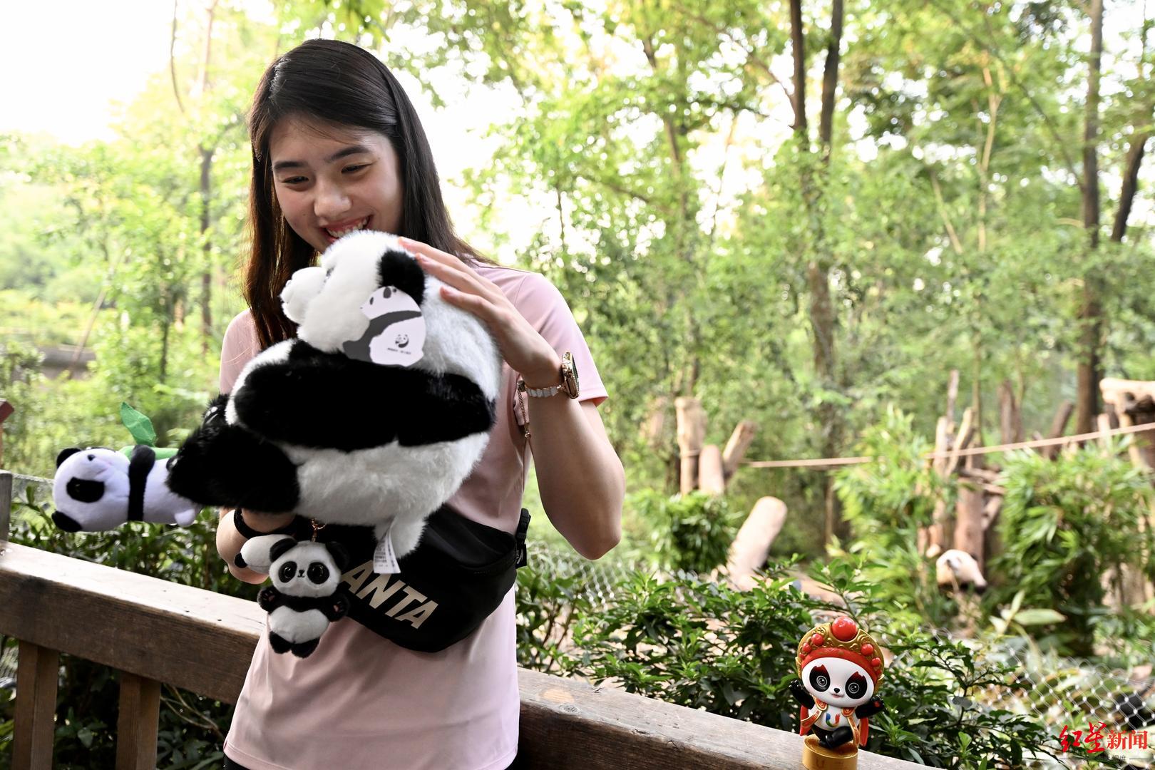 为了看“花花”,她的穿搭也别出心裁:胸前的挎包和手腕处各趴着一只熊猫,还拿了一只竹子形状的毛绒棒,上面也趴着一只熊猫。张雨霏说今天准备了很多问题要问谭爷爷,也期待着“花花”能够听懂她说话,和她互动。知道“花花”喜欢吃苹果的她本来准备了很多很多苹果,又怕“花花”吃坏肚子,还是放弃了这个打算。