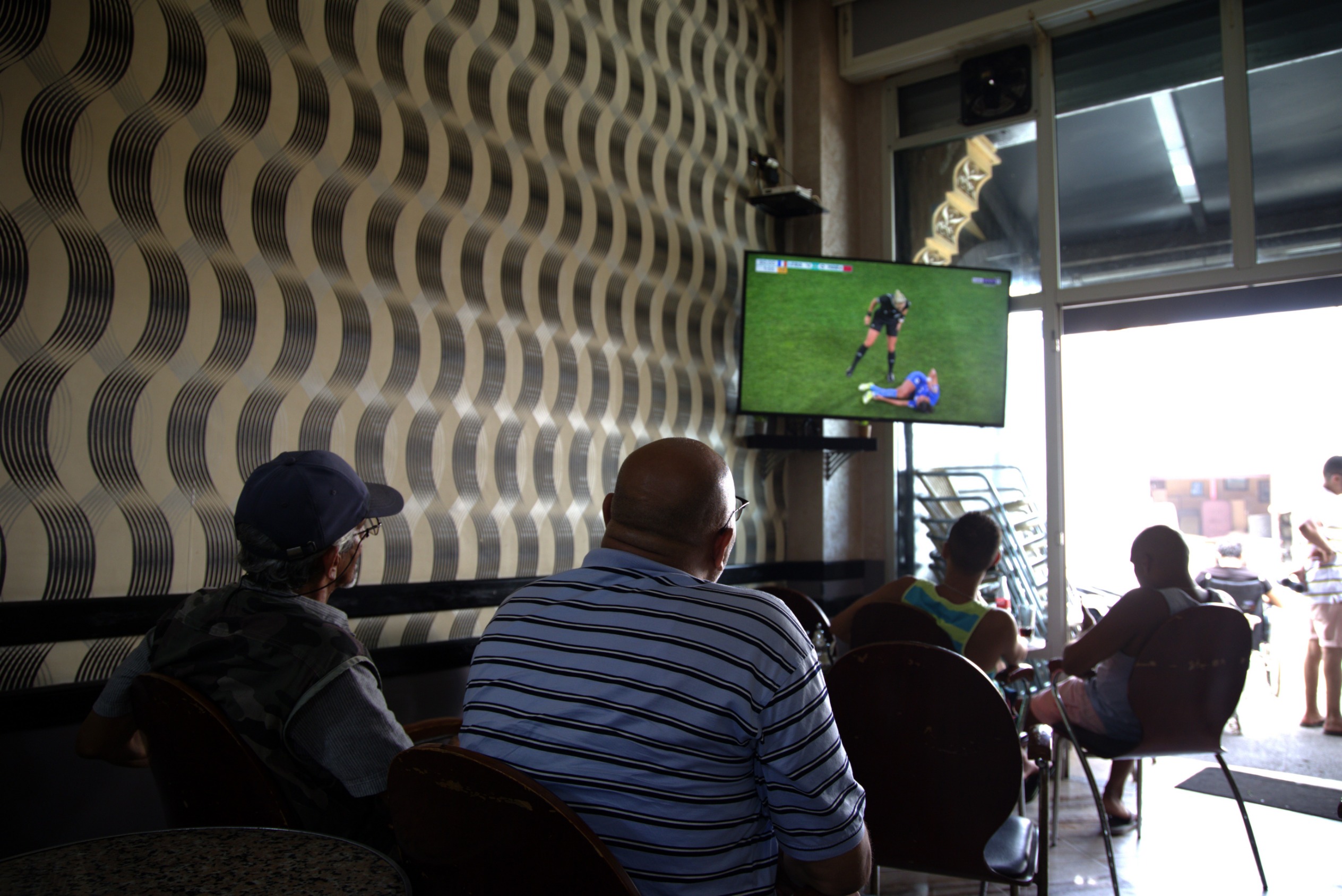 摩洛哥女足与法国队这场比赛进行时,正是摩洛哥当地时间8月8日的中午。记者走进了拉巴特老城的一家小咖啡馆。热情的球迷把不大的门面挤了个满满当当。他们紧紧盯着电视,生怕错过赛场上的一举一动。突破、缠斗、封堵……场上局势的变化,不时引来阵阵惊呼。