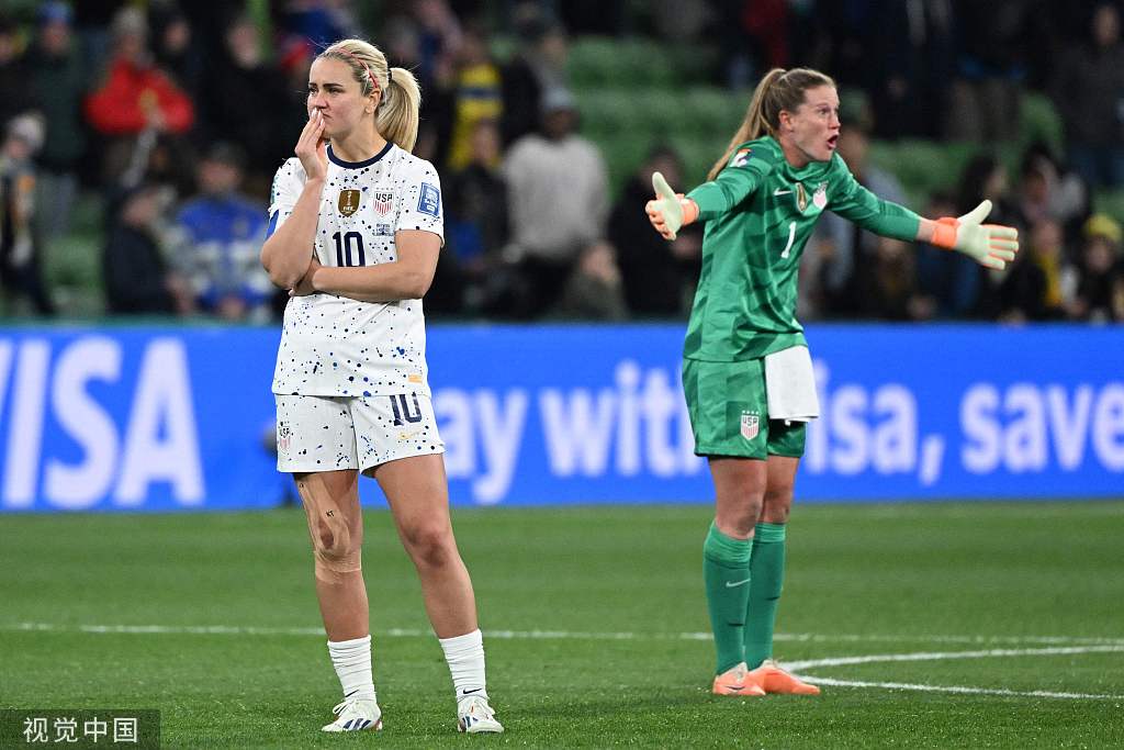 当她与队友们在墨尔本矩形体育场的更衣室跳跃、拥抱和歌唱时,理论上几乎无懈可击的美国女足,只能以泪水捱过出局之夜。