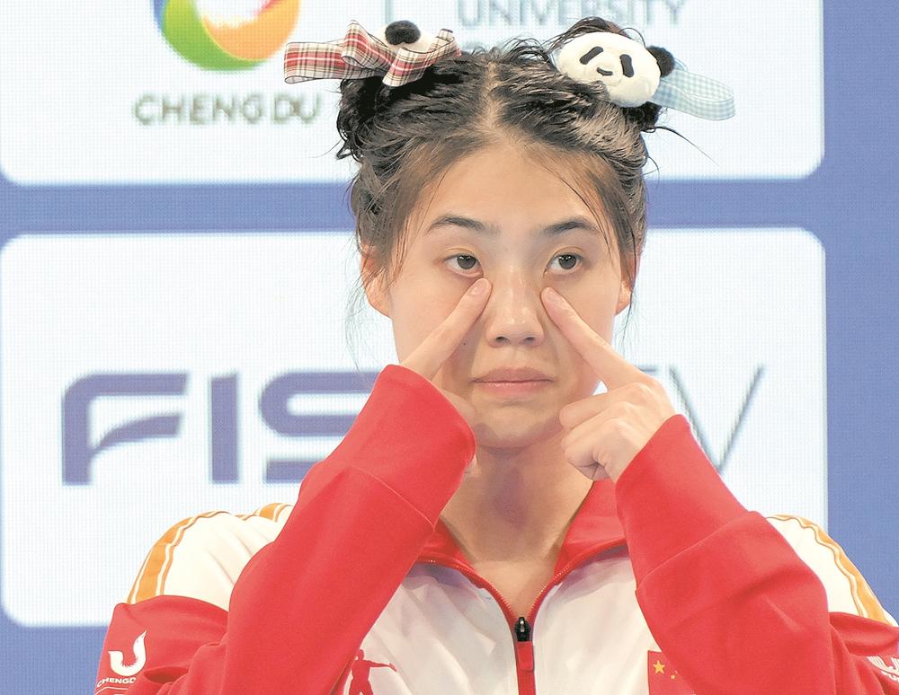 俏皮的九金天后8月5日,东安湖体育公园游泳馆,中国游泳运动员张雨霏在等待领奖的间隙做起了鬼脸。在此次成都大运会上,张雨霏荣获9枚金牌,是获得金牌最多的运动员。青春靓丽活泼大方的她是此次大运会最受欢迎的运动员之一。