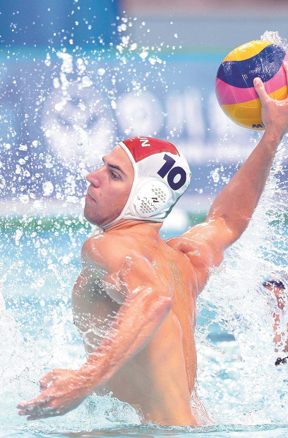 奋力一掷8月8日,双流区现代五项赛事中心游泳馆,在大运会水球男子金牌赛中,意大利队以13:10三球领先匈牙利队时,匈牙利10号选手Ekler犹如蛟龙出水,奋力射门并得分。