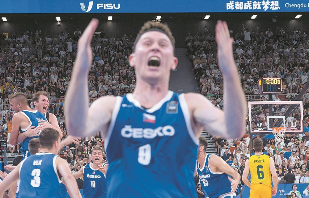 冠军的欢呼8月6日,凤凰山体育公园篮球馆,捷克队员在获胜瞬间的欢呼声响彻全场。在当日举行的大运会男子篮球决赛中,捷克队以69:67战胜巴西队,夺得冠军。