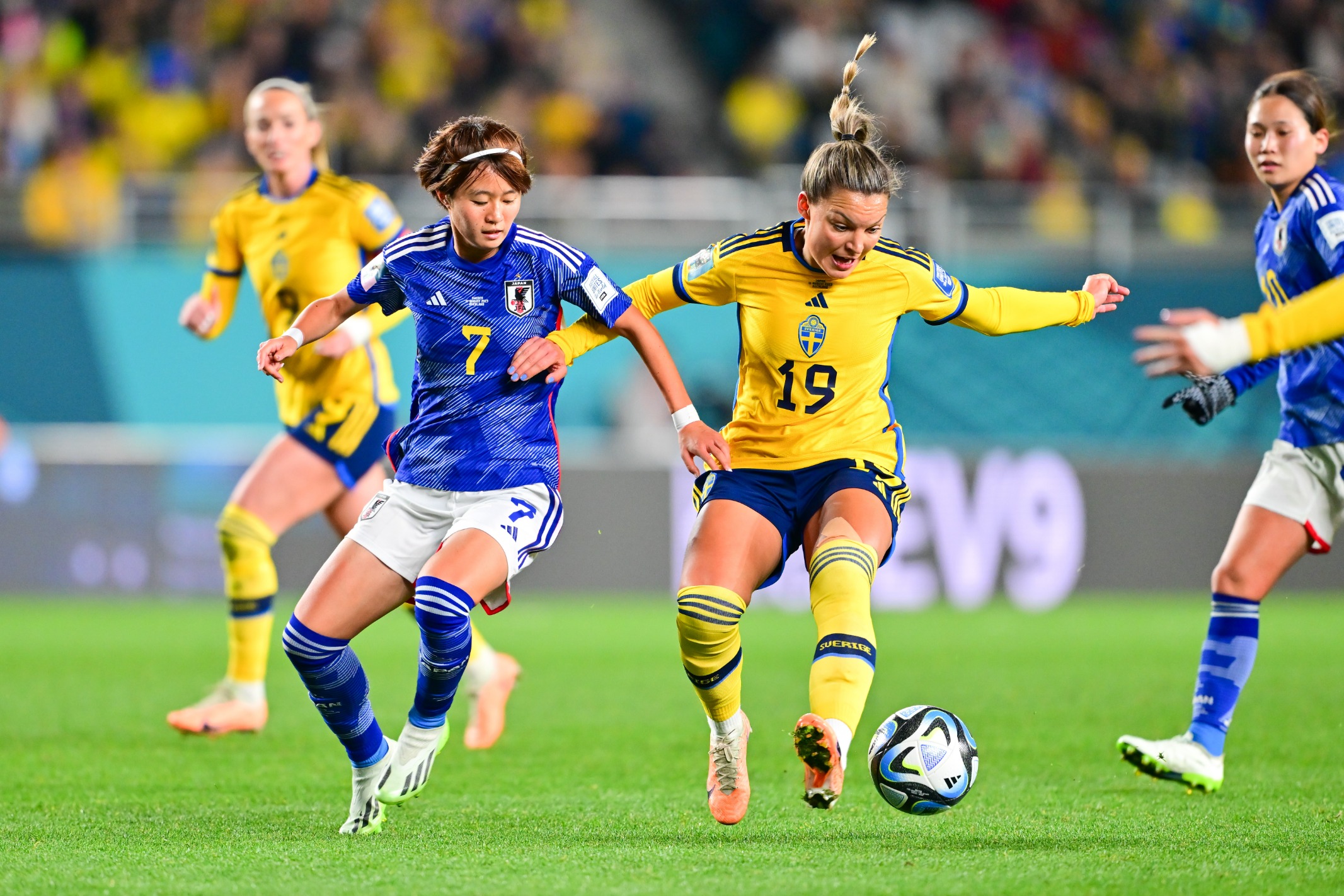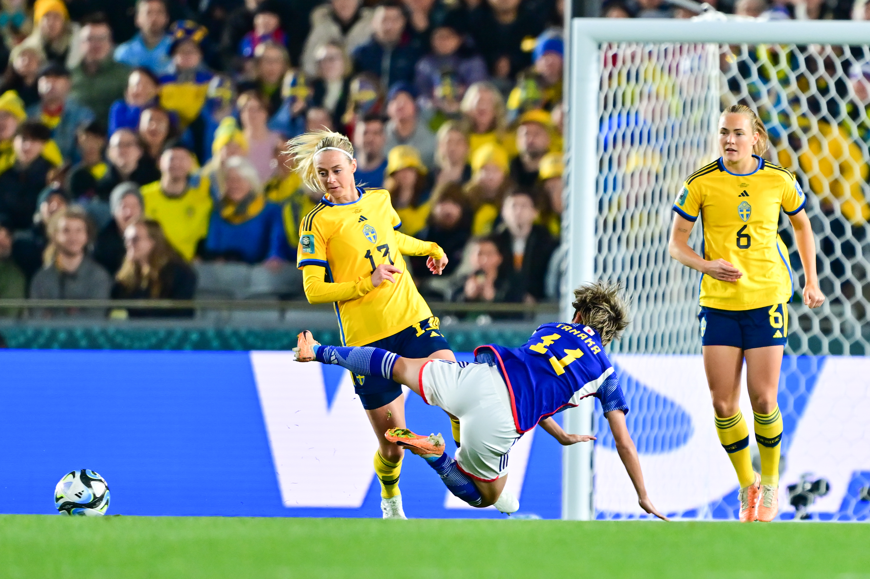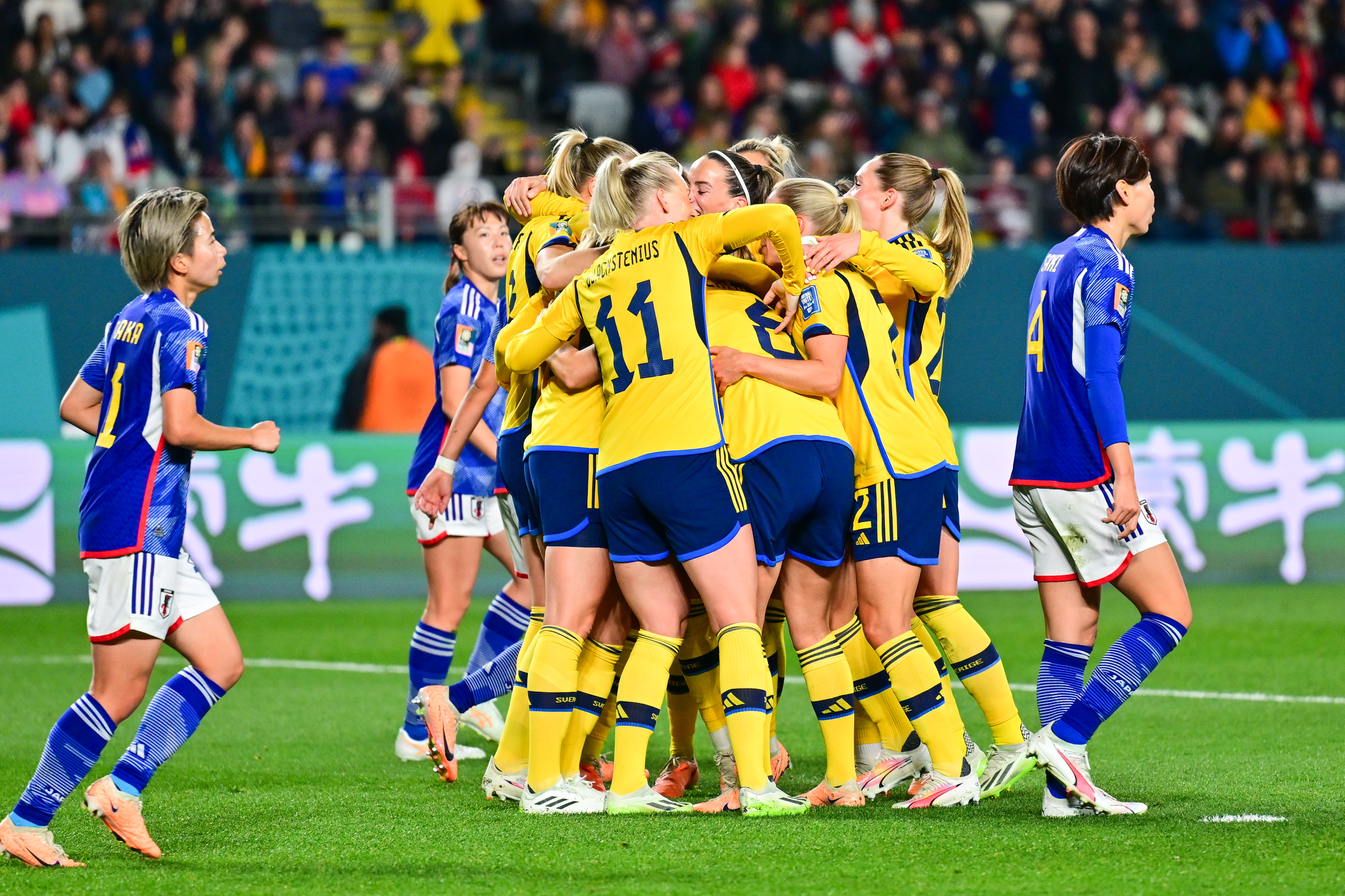 瑞典队此后攻势一浪高过一浪,在阿斯拉尼第42分钟打中一次门柱后,下半场一开始她们依然猛攻。第47分钟,在角球进攻中,日本队中场核心长野风花手球犯规,经过VAR(视频助理裁判)裁定,瑞典队获得点球,安格尔达尔一蹴而就,2:0。