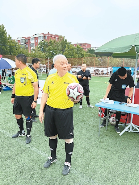 虽然只有短短5分钟,马世经仍一丝不苟。提前近半小时,他就来到场边与比赛裁判团队交流、布置执法注意事项。比赛开始后,他在规定位置移动,紧紧跟随小队员们的步伐。遇到快速攻防转换,老人甚至一路小跑,绝不错过一个场上细节。