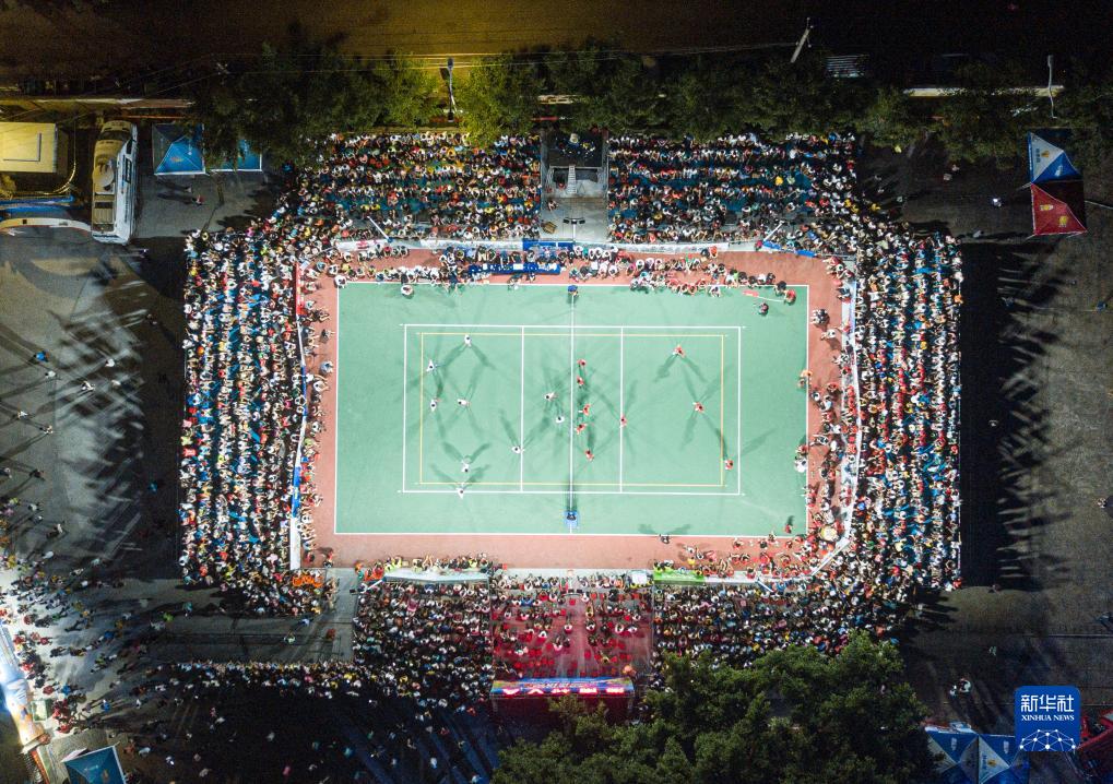 观众在海南省文昌市铺前镇观看“村排”比赛(无人机照片,7月23日摄)。