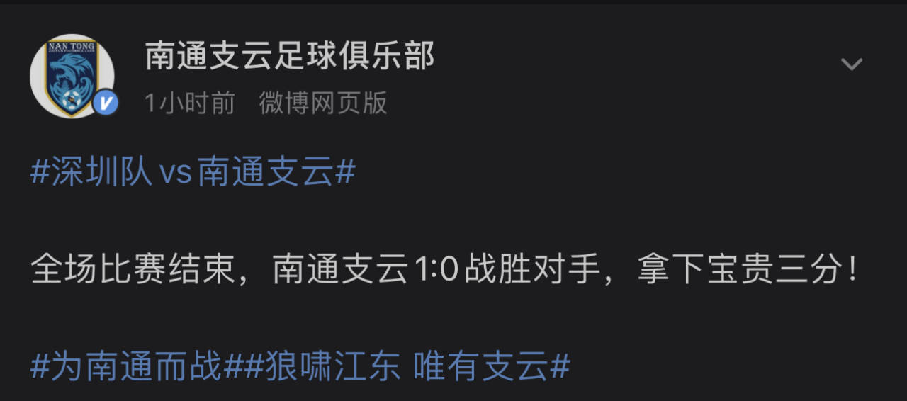 现代快报讯(记者花宇)8月19日晚,2023中超联赛第23轮迎来本赛季保级焦点之战,联赛第15名的南通支云客场对阵联赛第16名的深圳队。第69分钟,南通支云依靠阮杨的破门改写比分,反客为主,取得领先。最终,全场比赛战罢,南通支云依靠这粒进球在客场战胜深圳队,全取三分,拿下本赛季客场首胜,暂时脱离降级区。