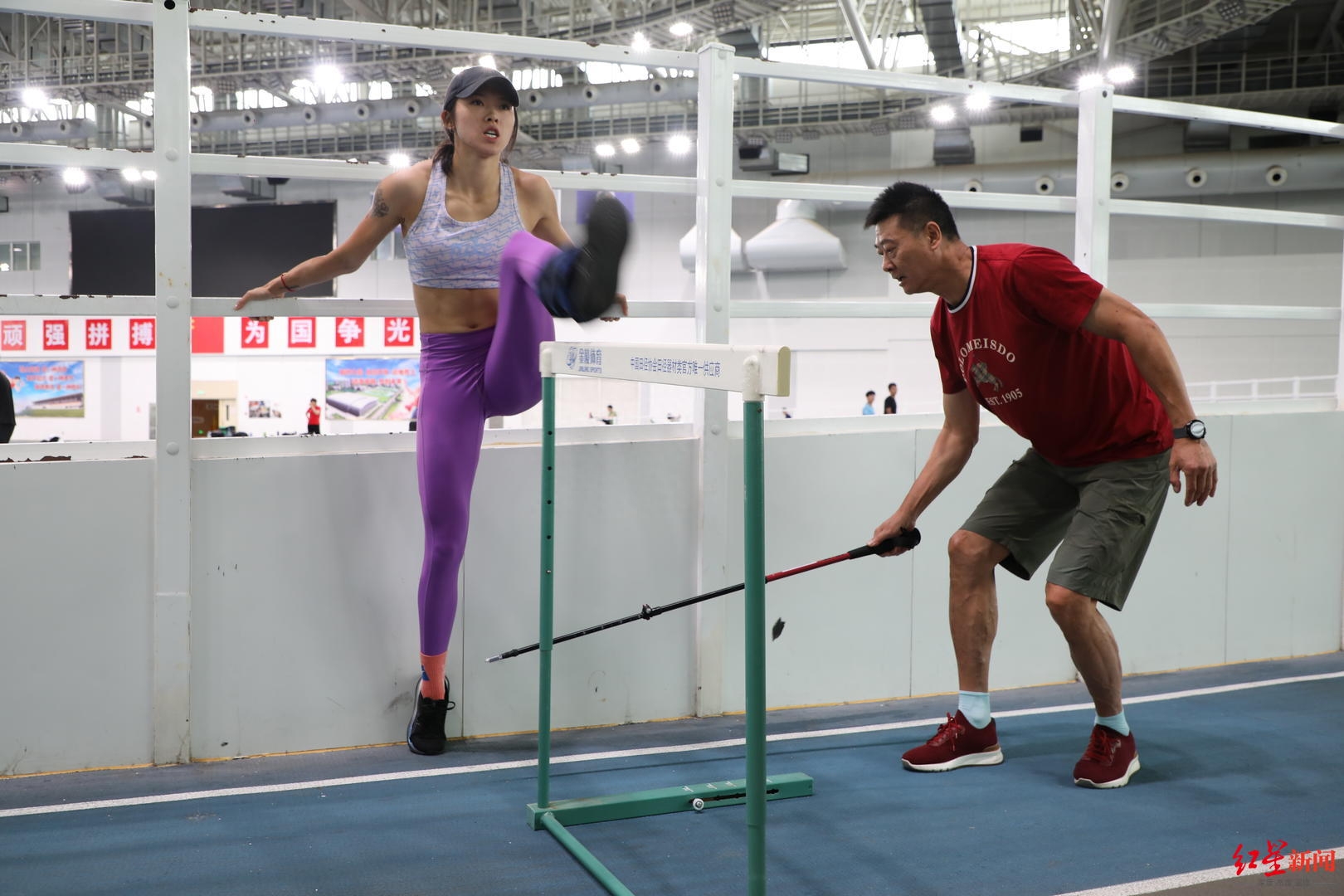 “对!对!就这样!保持!”“就是这样!继续!”……8月12日上午9时许,在位于天津市静海区的天津团泊体育中心田径训练馆内,吴艳妮正在教练杨辉的指导下进行着训练。