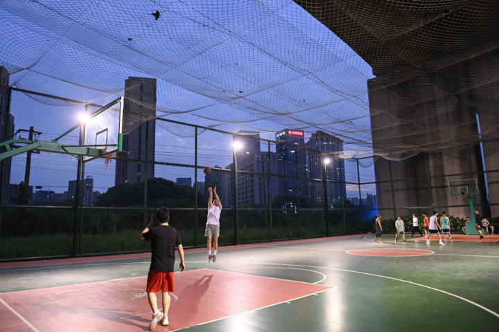 这是市民在钱江世纪城体育公园打篮球(2022年9月20日摄)。新华社记者黄宗治摄