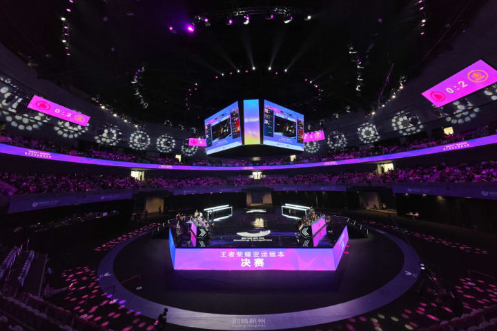 这是在杭州电竞中心拍摄的“韵味杭州”电子竞技全国邀请赛王者荣耀亚运版决赛现场(2023年5月21日摄)。新华社记者黄宗治摄