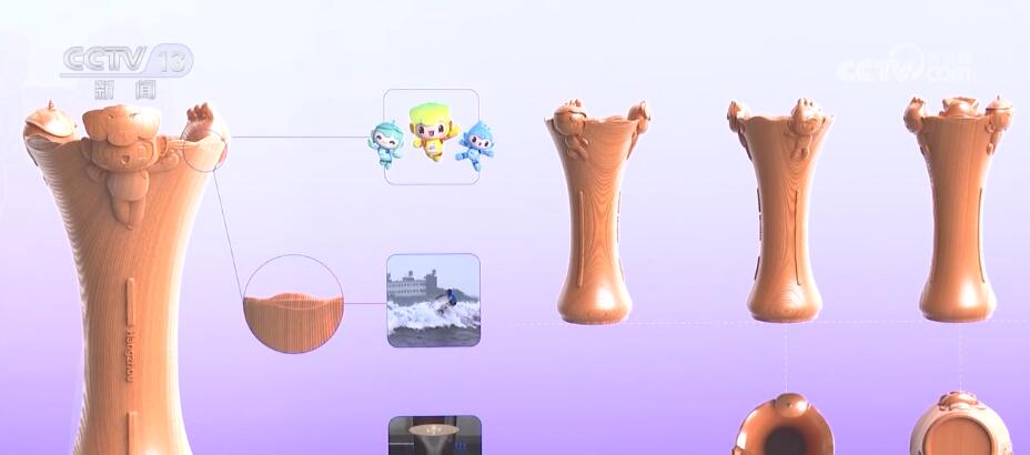 颁奖托盘设计灵感则来源于微风中波动的西湖水面,结合本届亚运会核心图形“润泽”中的飘逸丝带意向,整体给人流动的感觉。