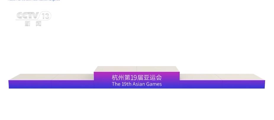 颁奖台以“虹韵紫”的渐变色作为主色调,在功能上采用模块式设计,易于拼搭,前面的这块板可以替换也可以重复利用,体现绿色亚运、节俭亚运的理念。