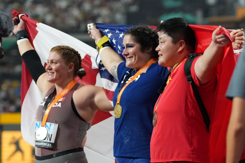 女子铅球,巩立姣(右)连续8届世锦赛站上领奖台。图/新华社