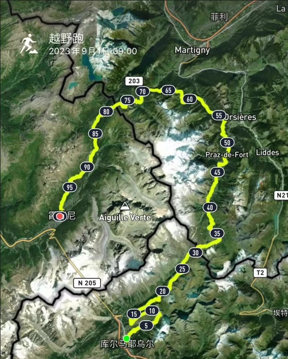环勃朗峰超级越野赛100公里路线图。受访者供图