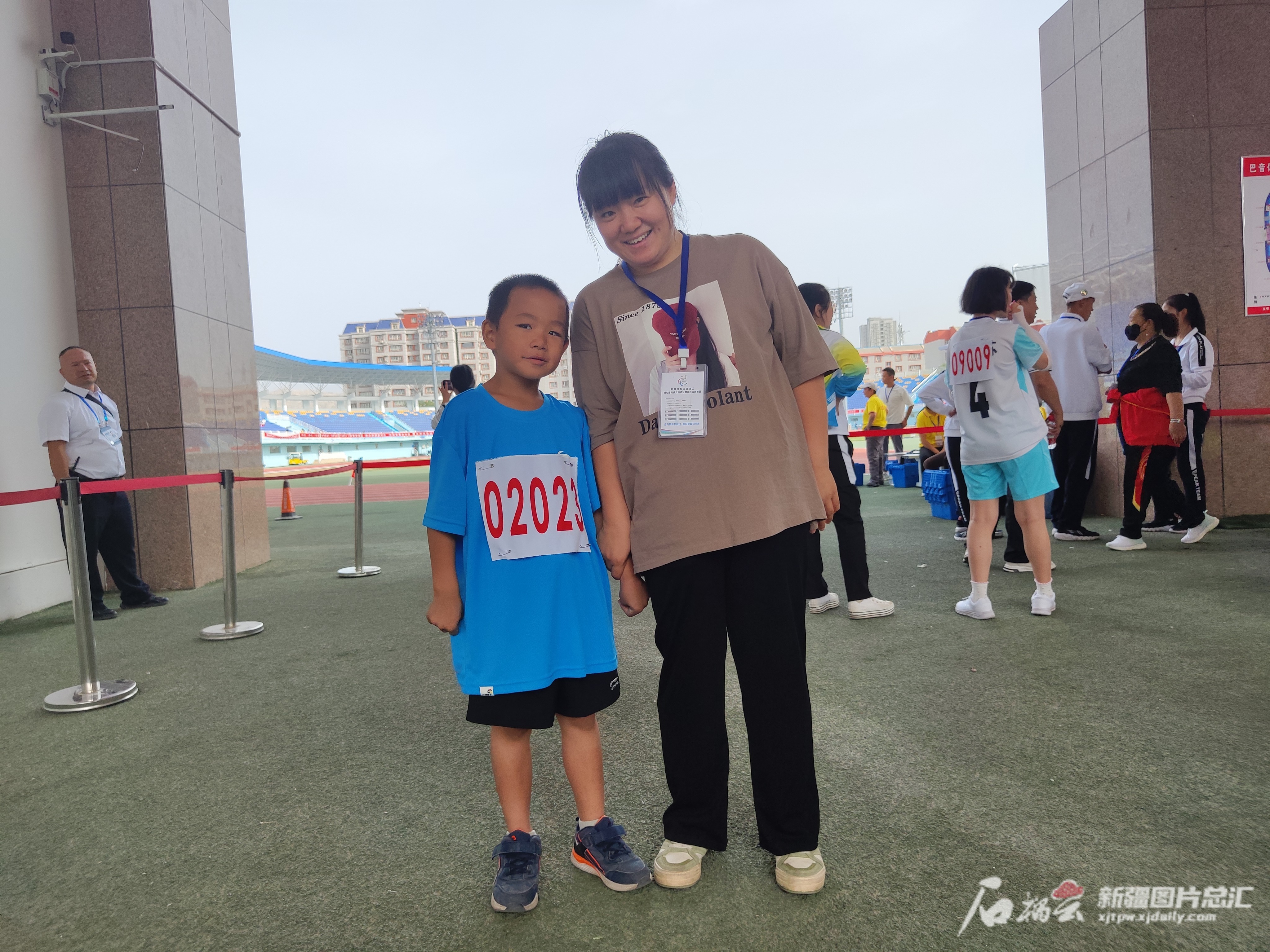 比赛结束后,邓连豪依偎在妈妈身旁,开心极了。天山网-新疆日报记者黄兴摄