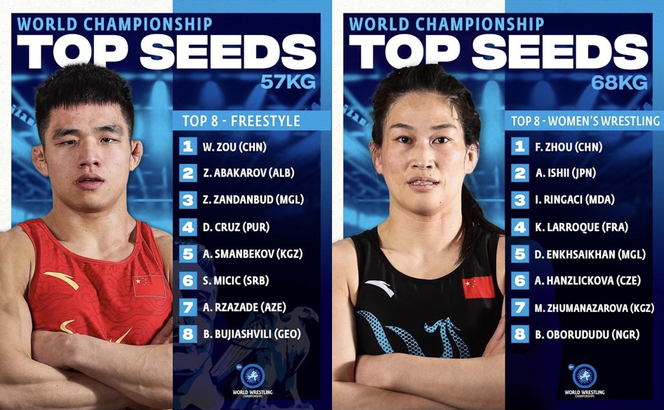 女子自由式摔跤老将周凤将以头号种子的身份参与68公斤级的较量,男子自由式摔跤57公斤级名将邹万豪成为该项目头号种子选手。