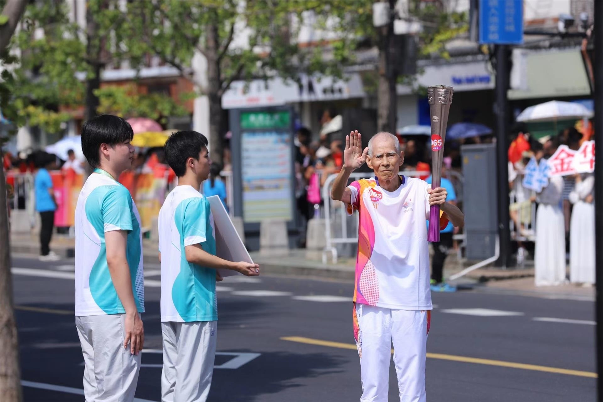 担任第65棒火炬手的84岁“最美五老”、金华市婺城区雷锋事迹馆馆长、“雷锋老人”曹荣安满头白发但精神饱满擎着火炬,从婺城区飘萍路保宁门楼路段跑过。曹荣安说,那一刻,心里百感交集,既激动又光荣。“在家门口迎接亚运会的到来,心情非常激动,能作为一名火炬手参与其中,见证祖国的强大,见证山河的美好,见证盛会的到来,我感到无比自豪。”