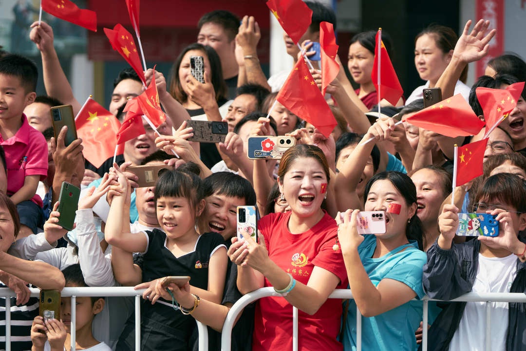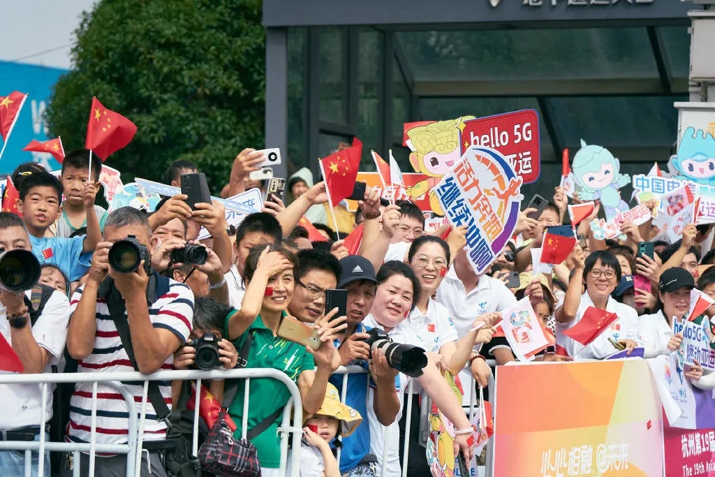 火炬传递沿线,市民热情高涨,挥舞着手中的国旗,为亚运呐喊,为金华加油。