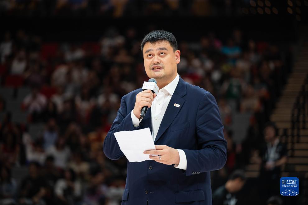 9月17日,姚基金创始人、中国篮球协会主席姚明在活动上致辞。新华社记者张金加摄