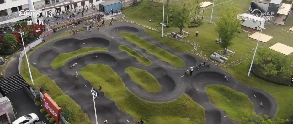 这片波浪道特别受孩子们的喜欢。在刚刚过去的这个暑假以及每个周末,这里能看见很多孩子们的身影,他们骑着山地自行车、骑着小轮车在这里追逐飞跃,他们当中年龄最小的只有4岁。除了室外场地,村里正在打造一个占地1000多立方米的室内体育馆。10月中旬投入使用之后,可以在里面打羽毛球、篮球、乒乓球,还有攀岩项目。