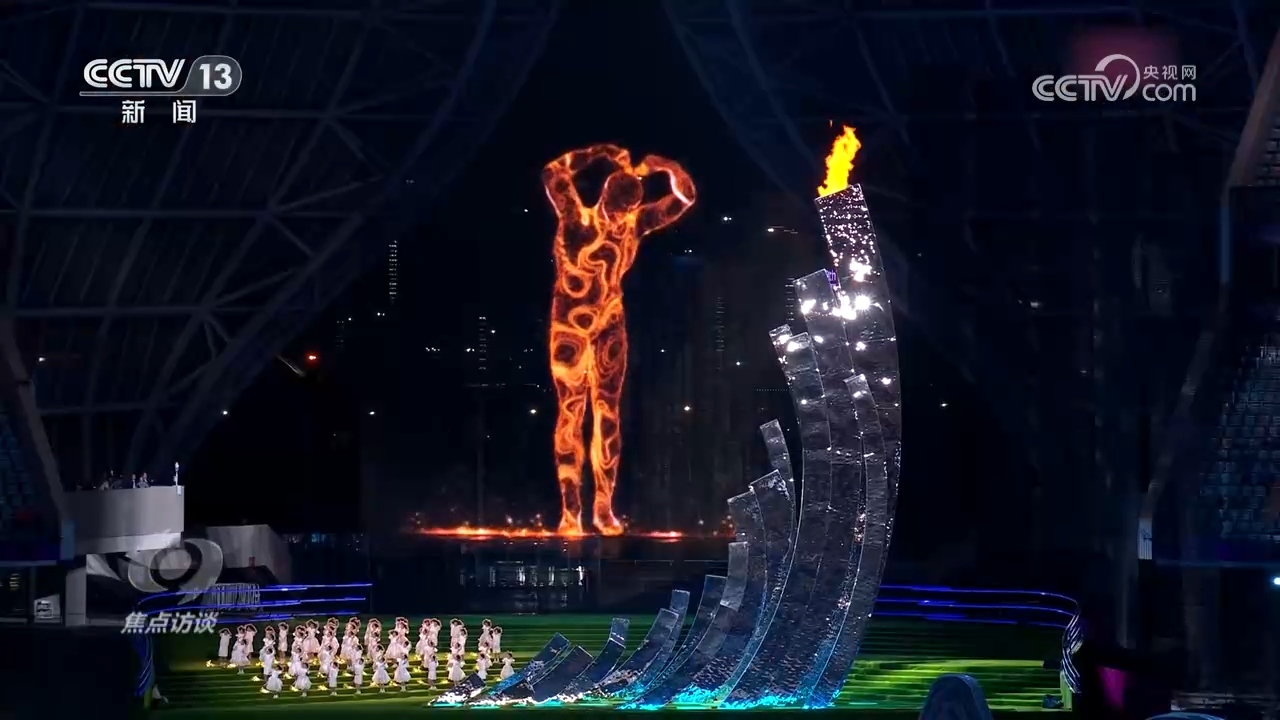 闭幕式上,亚运会“数字火炬人”——“弄潮儿”再次惊艳亮相,它和现场所有的观众、演员一起比了一个爱心之后,共同见证了杭州亚运会火炬缓缓熄灭。火炬熄灭后,“数字火炬人”依依不舍转身离开,它由亿万颗星光汇聚而成,也再次幻化为满天星光,洒向杭州,飞向亚洲。