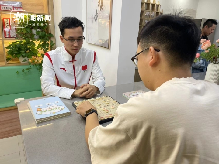 居民陈先生怎么也没有想到,好久没有下棋的他,再次坐在棋盘前,竟然是和一位亚运冠军一起较量,内心有些紧张。