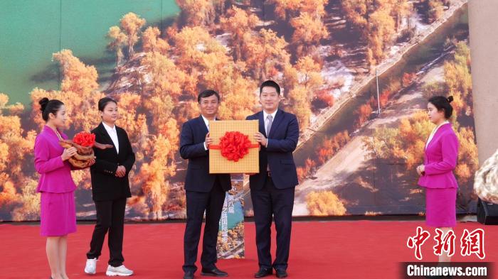 中国围棋协会主席常昊与新疆沙雅县委副书记、县长吾斯曼·塔力甫互赠纪念品。(王克毅 摄)