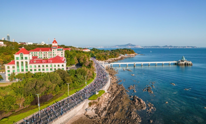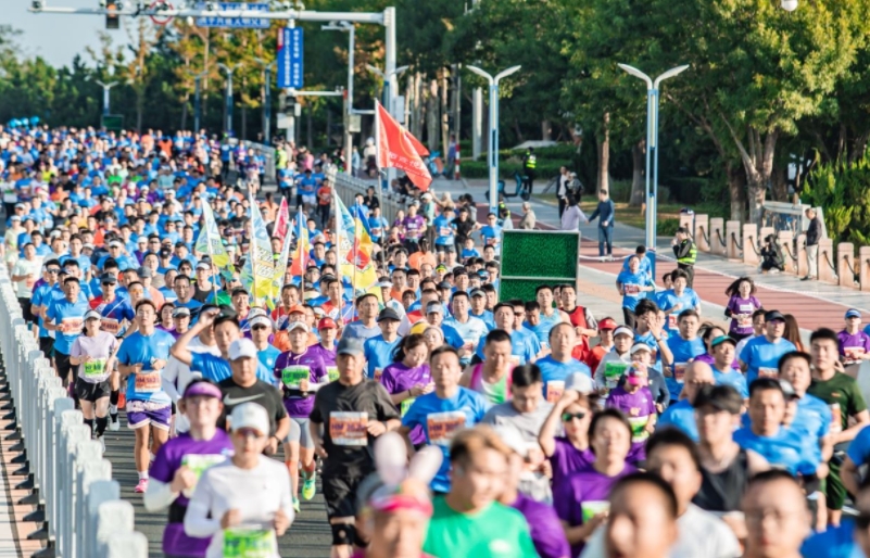 上午7时整,滨海广场,随着一声嘹亮的发枪令响,选手们在呐喊声、加油声、鼓掌声冲出起跑线。在著名体育主持人刘建宏、著名马拉松运动员李子成、全运冠军边通达、原国家队运动员、跑步女神吴敏领跑下,所有跑者在朝阳与海风的沐浴下,尽情的向终点奔去。