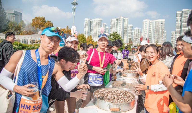 当然,作为一场的城市重要体育赛事,“烟马”在沿途还准备了“惊喜”。18个特色沿途补给站:烟台苹果、莱阳梨、鲅鱼水饺、鲈鱼狮子头、福山烧鸡、海参包子,应有尽有;完赛补给点:5千斤扇贝、蛤等“海鲜大咖”、一红一黄美酒补给长廊,现蒸现吃,管够吃喝……令参赛运动员直呼过瘾。