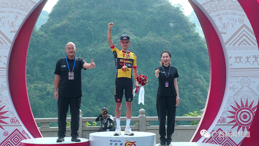 2023年格力世巡赛·环广西南宁-弄拉赛段冠军珍宝-维斯玛车队车手 米兰·维德:在过了50到70公里之后,我感觉自己整个状态非常好,但是在最后终点的时候,其实体力已经消耗非常大,感到体力透支,甚至有点眩晕,最后还是凭借发力赢得了今天的赛段。