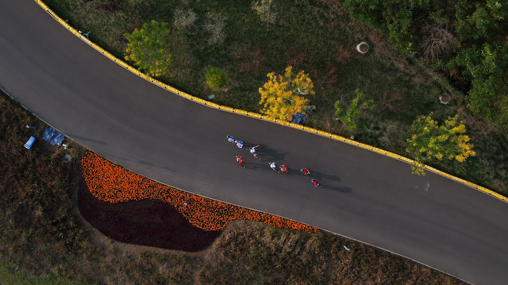 10月24日,选手在比赛中(无人机照片)。 新华社记者 杨世尧 摄