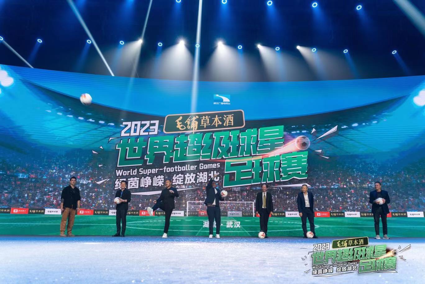 (2023年9月24日,由毛铺草本酒冠名的“绿茵峥嵘 绽放湖北”世界超级球星足球赛暨湖北行系列活动在湖北广播电视台2000平米演播室举行启动仪式)