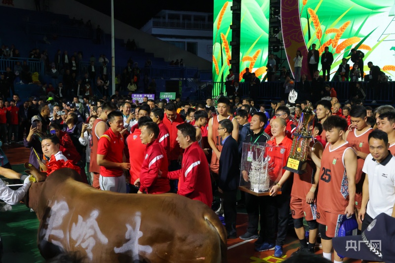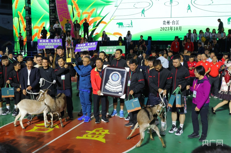 在颁奖仪式上,夺冠的沙溪队获得苗族特色冠军银帽一顶以及具有“村”味的关岭黄牛一头、台江鲤吻香米25份。亚军大朗队则获得了银项圈1个,习水黔北麻羊2只和雷山银球茶25份。