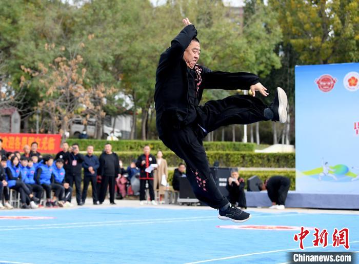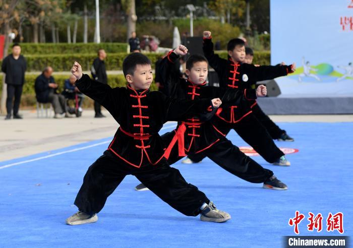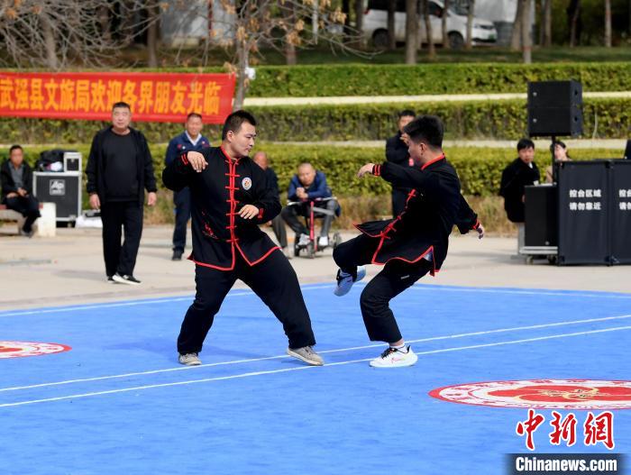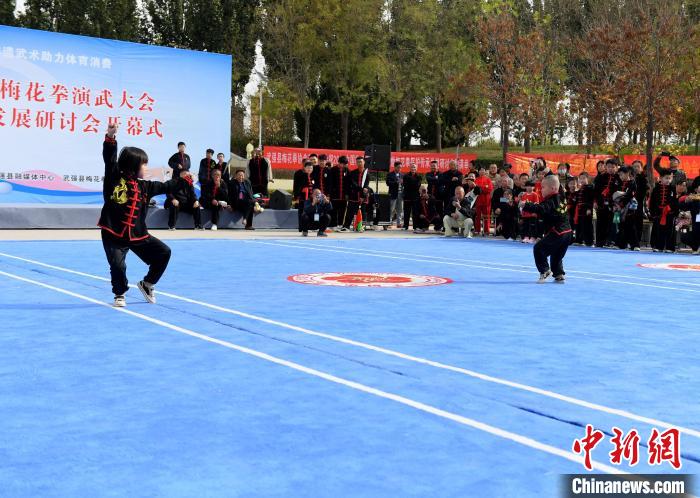 11月3日,2023中国(武强)梅花拳演武大会现场,梅花拳弟子表演拳法。苏小立摄
