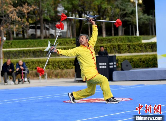 11月3日,2023中国(武强)梅花拳演武大会现场,梅花拳弟子在进行器械表演。苏小立摄