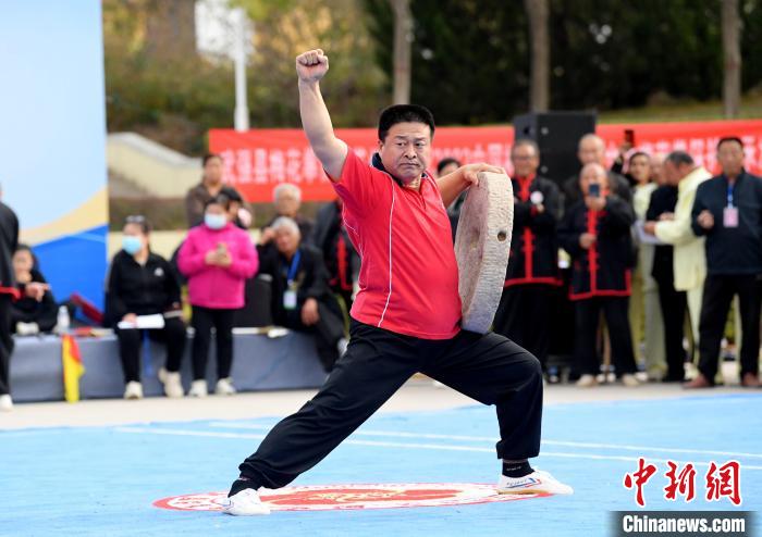 11月3日,2023中国(武强)梅花拳演武大会现场,梅花拳弟子进行力量训练。苏小立摄