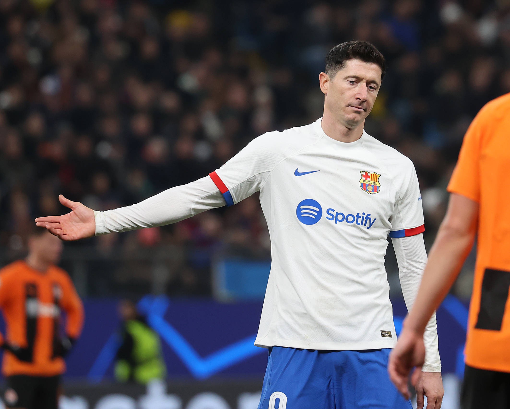 对于输球,莱万非常无奈。