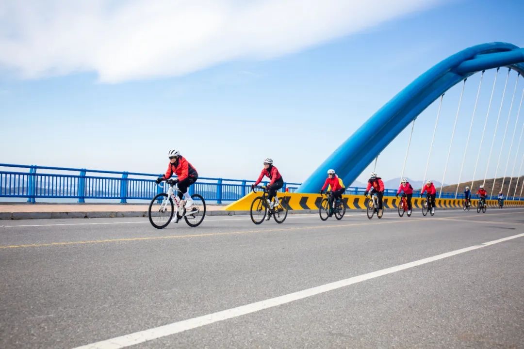 骑行队伍经过金石滩大桥(央广网发受访单位供图)