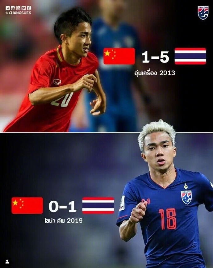 泰国队也对主场和国足的比赛抱有很大期待值——双方最近5次交锋,泰国队2胜3负稍稍处于下风。2013年在合肥雨夜,中国队1比5负于泰国,也被认为是中国男足彻底“堕落”的标志。