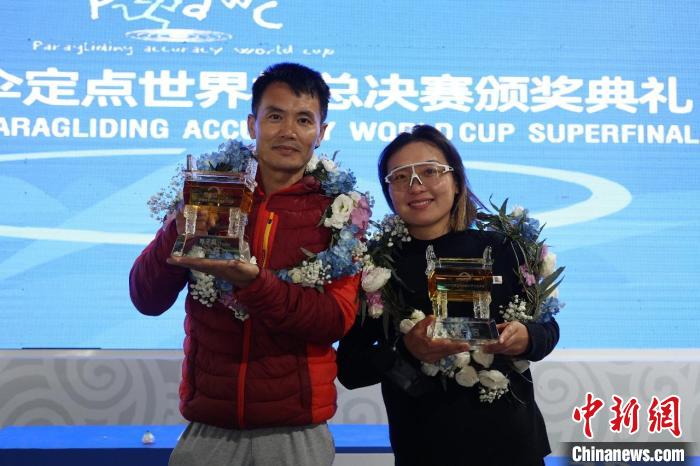 中国选手陈洋(左)、郭婧分别获得男子组、女子组年度总冠军。荆门亚联供图