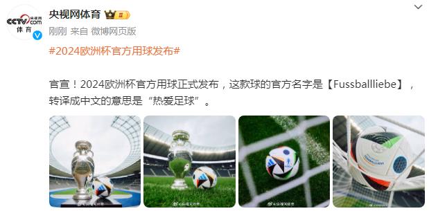 据央视网体育11月15日报道,官宣!2024欧洲杯官方用球正式发布,这款球的官方名字是【Fussballliebe】,转译成中文的意思是“热爱足球”。
