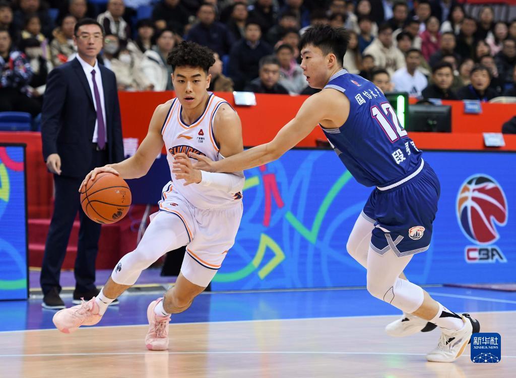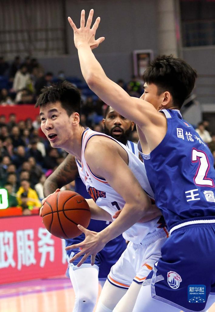 11月15日,上海久事队球员郭昊文(左)在比赛中进攻。新华社记者李紫恒摄