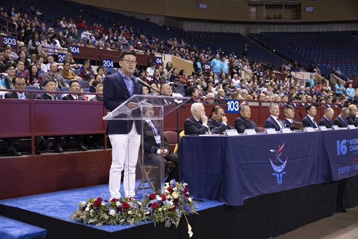 恒源祥集团董事长兼总经理陈忠伟代表赛事冠名赞助商在开幕会上致辞。他首先祝福此次世界武术锦标赛的顺利举办,并回顾了恒源祥与武术多年来的密切联系,恒源祥作为此次武术锦标赛的赞助商,一直以来都同样饱满的热情投身于全球武术的发展中,自2012年签约成为国际武术联合会的全球合作伙伴后,不断加大力度为武术的文化与品牌发展赋能,着墨于武术文化、哲学、艺术、生活与运动的探索研究,搭建武术与其他领域的对话交流平台,为武术事业的进步贡献自己的一份力量,未来,恒源祥也将一如既往地推广传播武术理念与精神。最后,他预祝此次恒源祥第十六届世界武术锦标赛圆满成功。