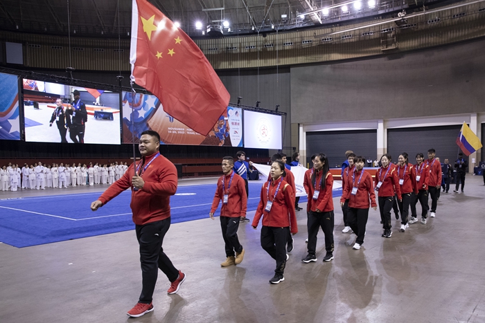 工人日报客户端11月17日电(工人日报-中工网记者朱亚男)当地时间11月16日晚,“恒源祥”第十六届世界武术锦标赛在美国得克萨斯州隆重开幕。时隔四年后,世界各地的拼搏武者再聚一堂,共享武术运动魅力。
