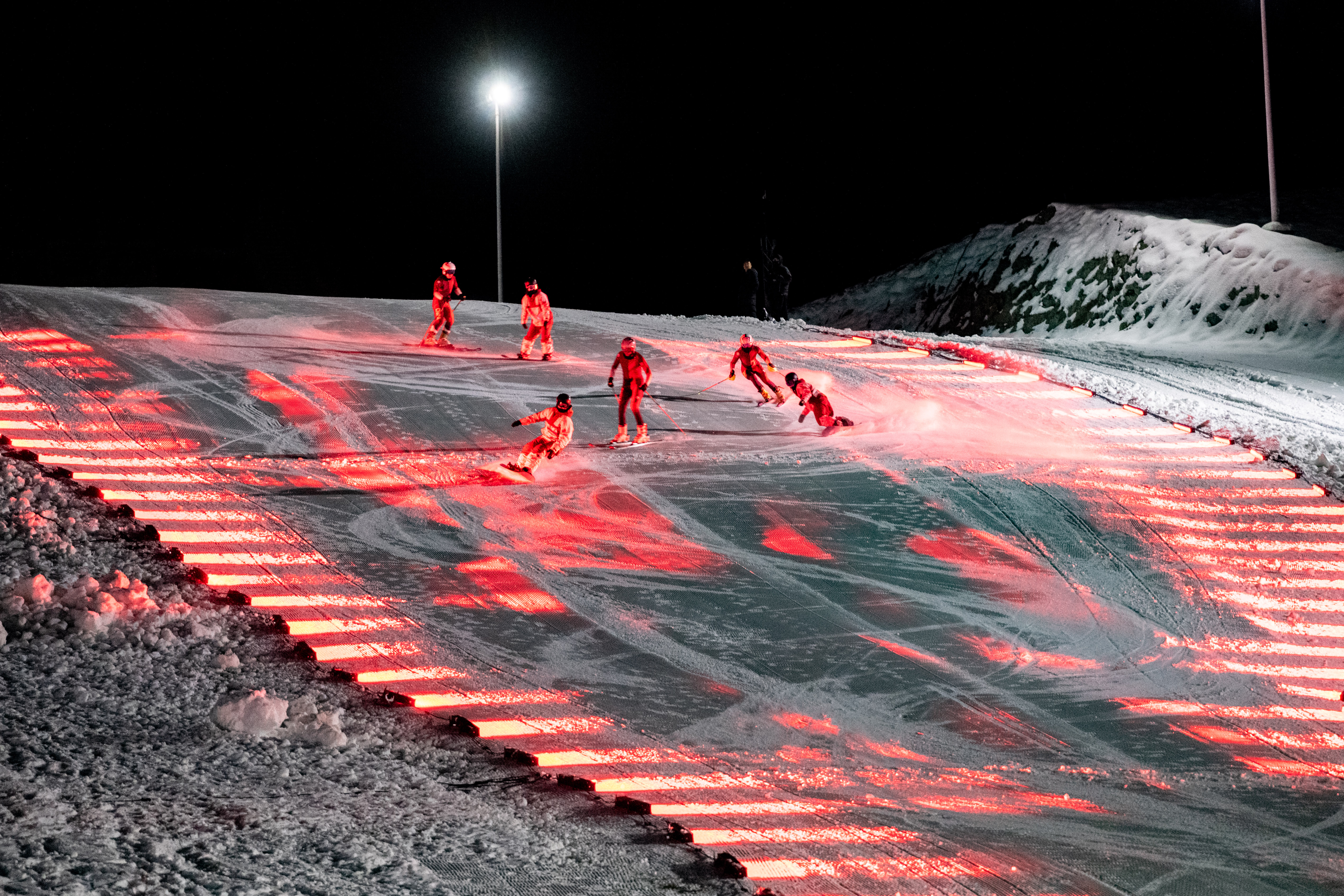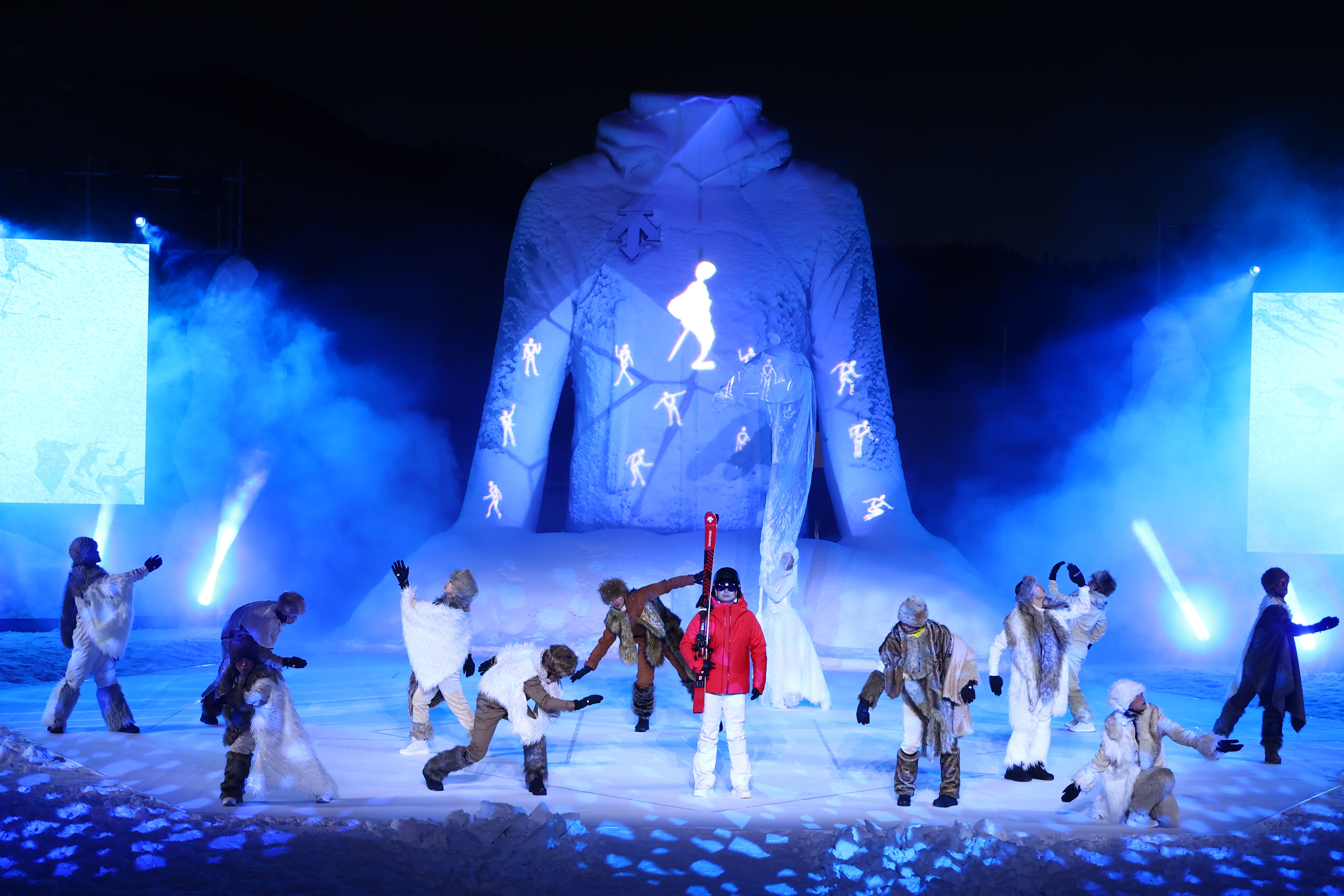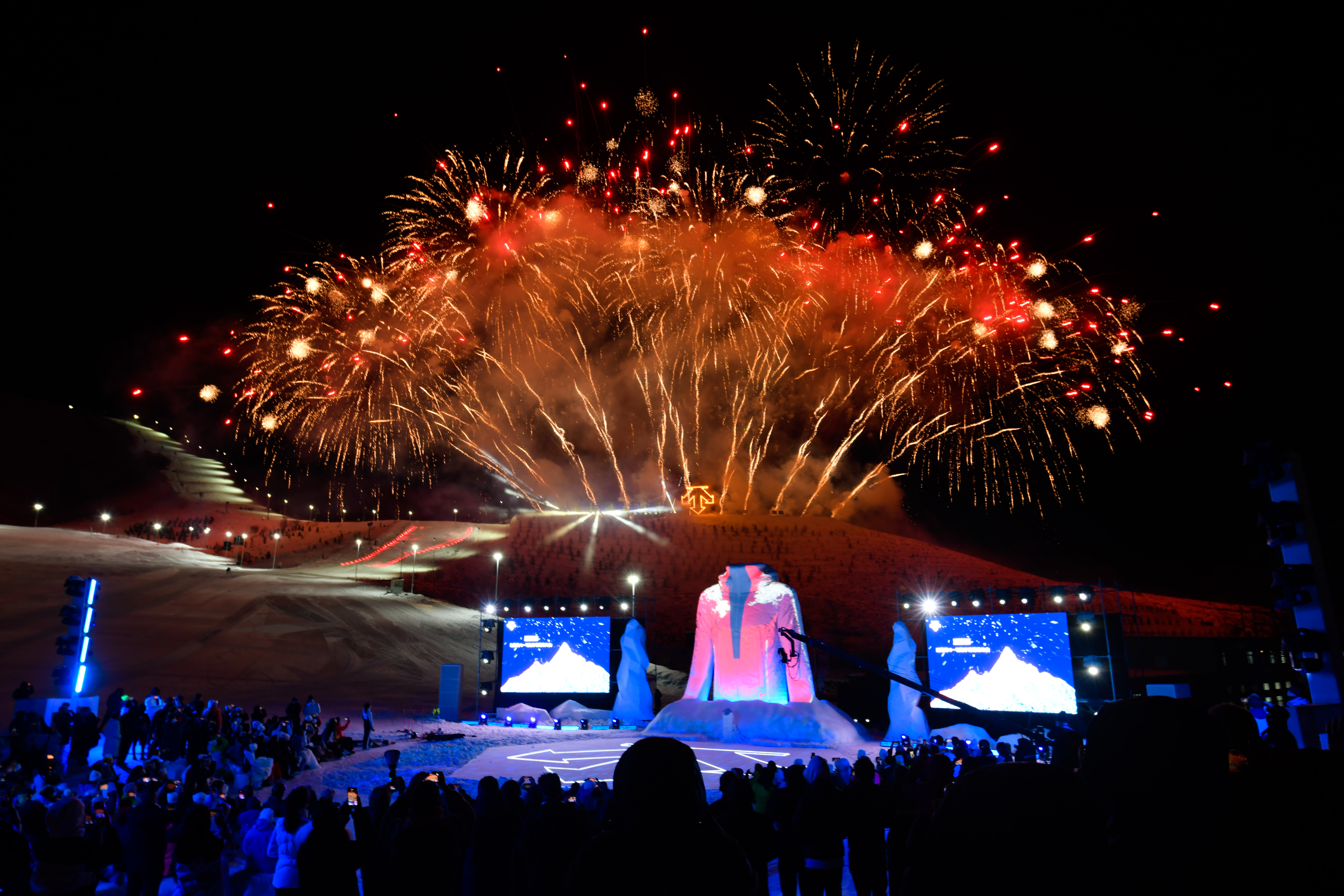 这场烟花,一方面是为了迎接将军山雪场在这个雪季第一场夜场“开板”的到来,更重要的一方面则是——为了庆祝运动品牌迪桑特和中国国家单板滑雪U型场地队、中国国家高山滑雪队的正式合作。
