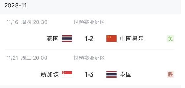 泰国队世预赛前两轮战绩