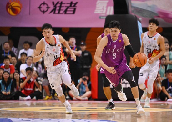 6月18日,当时效力于清华大学队的邹阳(右二)在CUBAL总决赛中带球突破。新华社记者胥冰洁摄