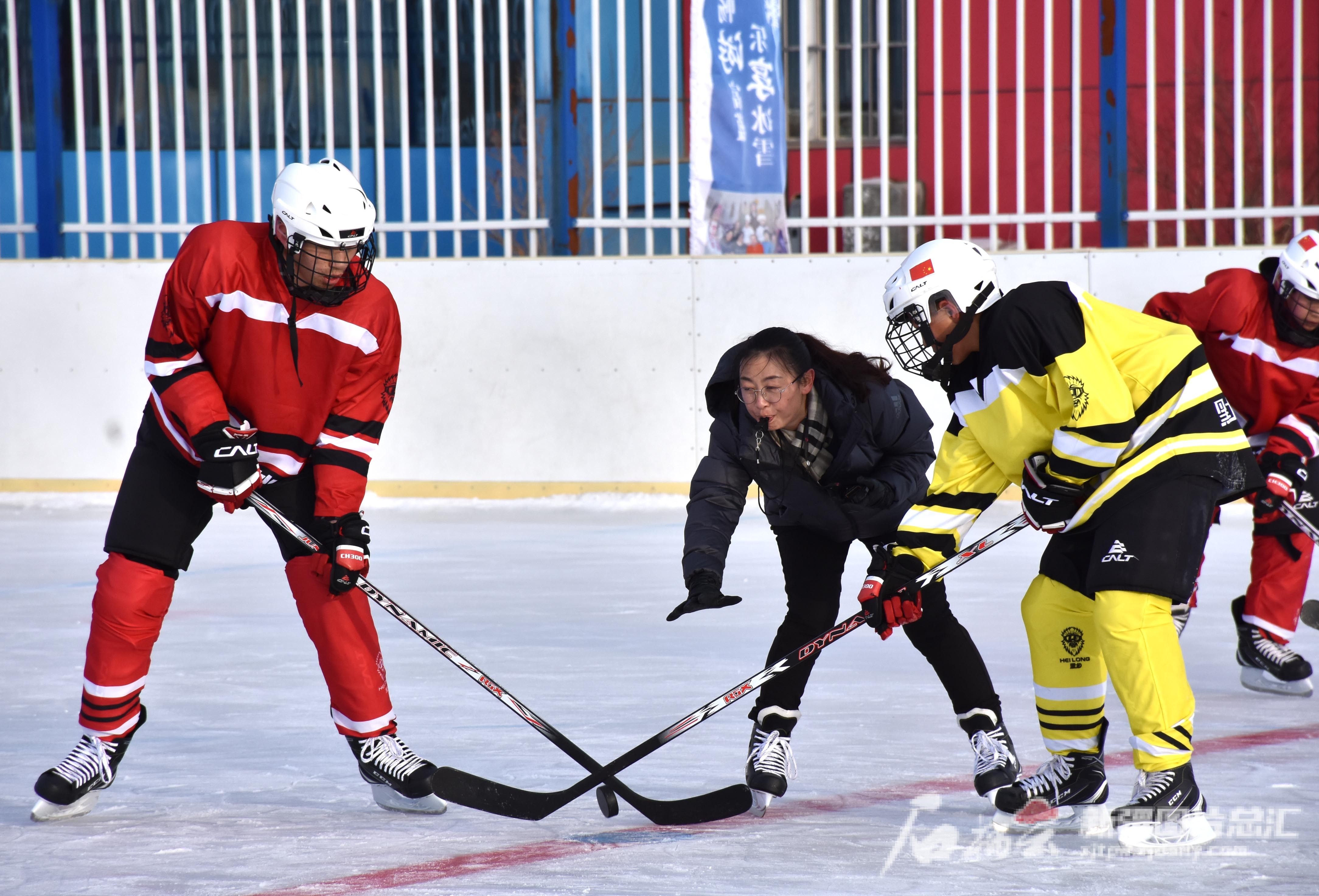 富蕴县青少年冰球队在训练赛上。富蕴县委宣传部供图