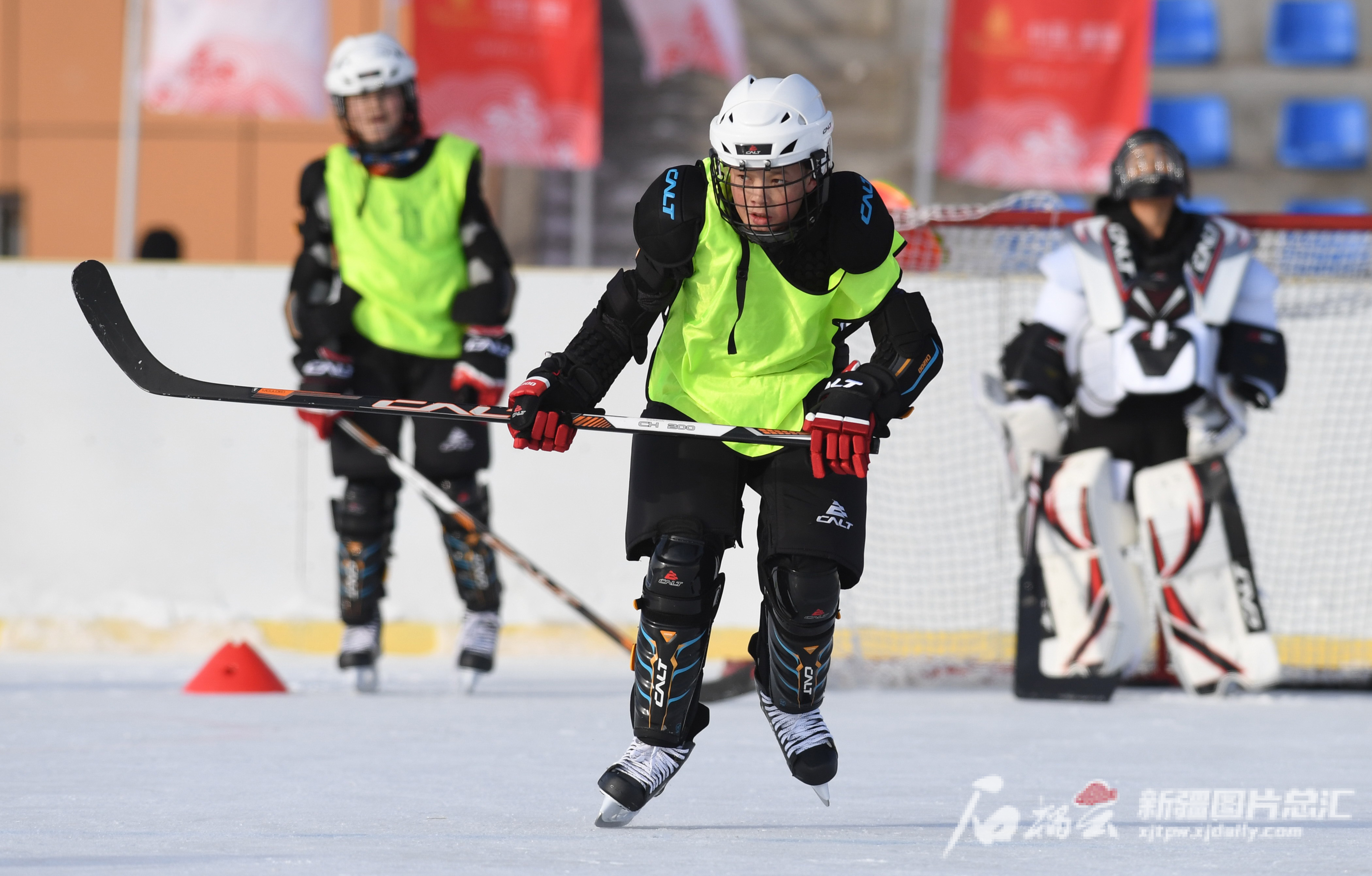 富蕴县青少年冰球队在训练中。富蕴县委宣传部供图
