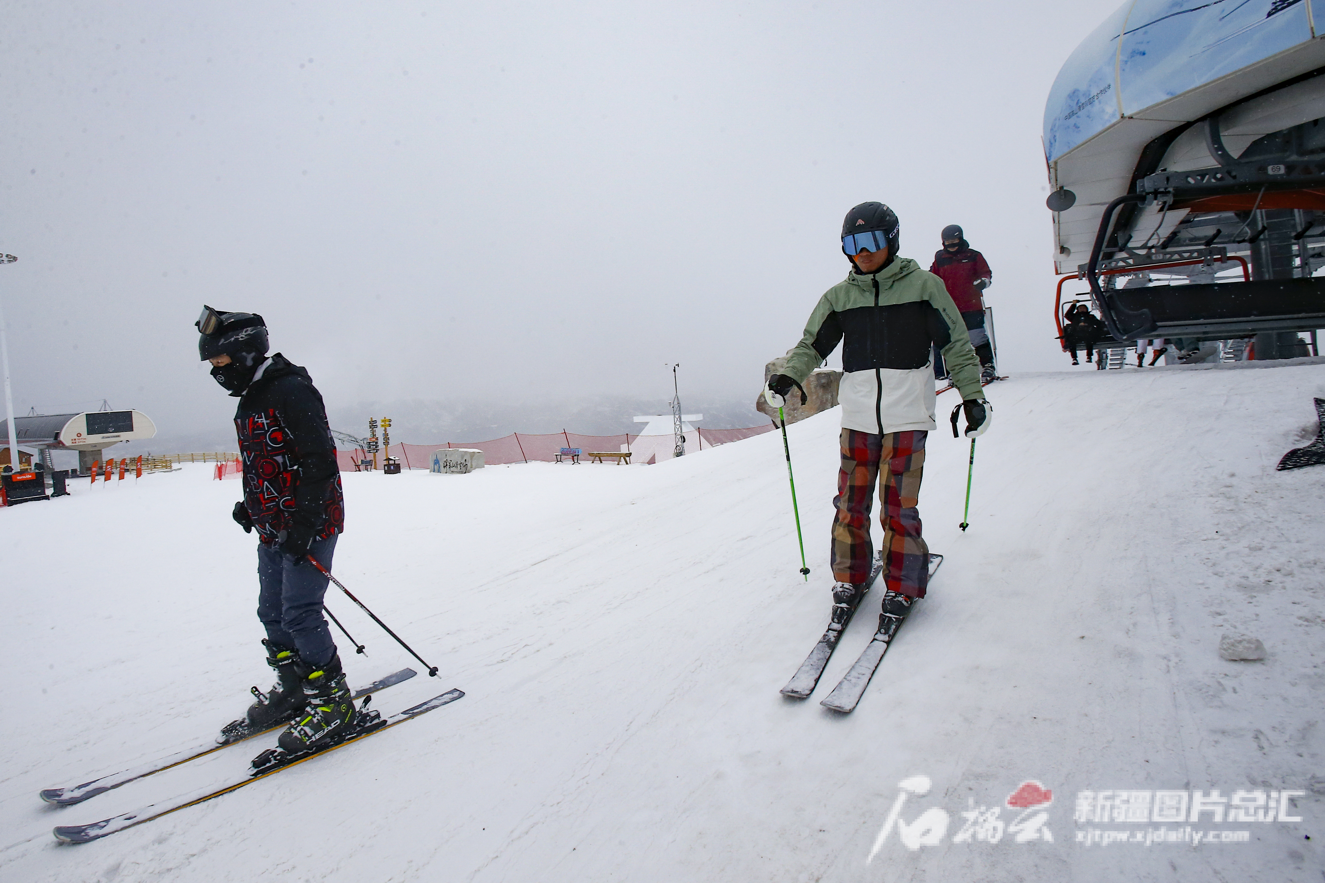 11月25日,在阿勒泰将军山国际滑雪度假区,滑雪爱好者下了缆车,直奔雪道起点。